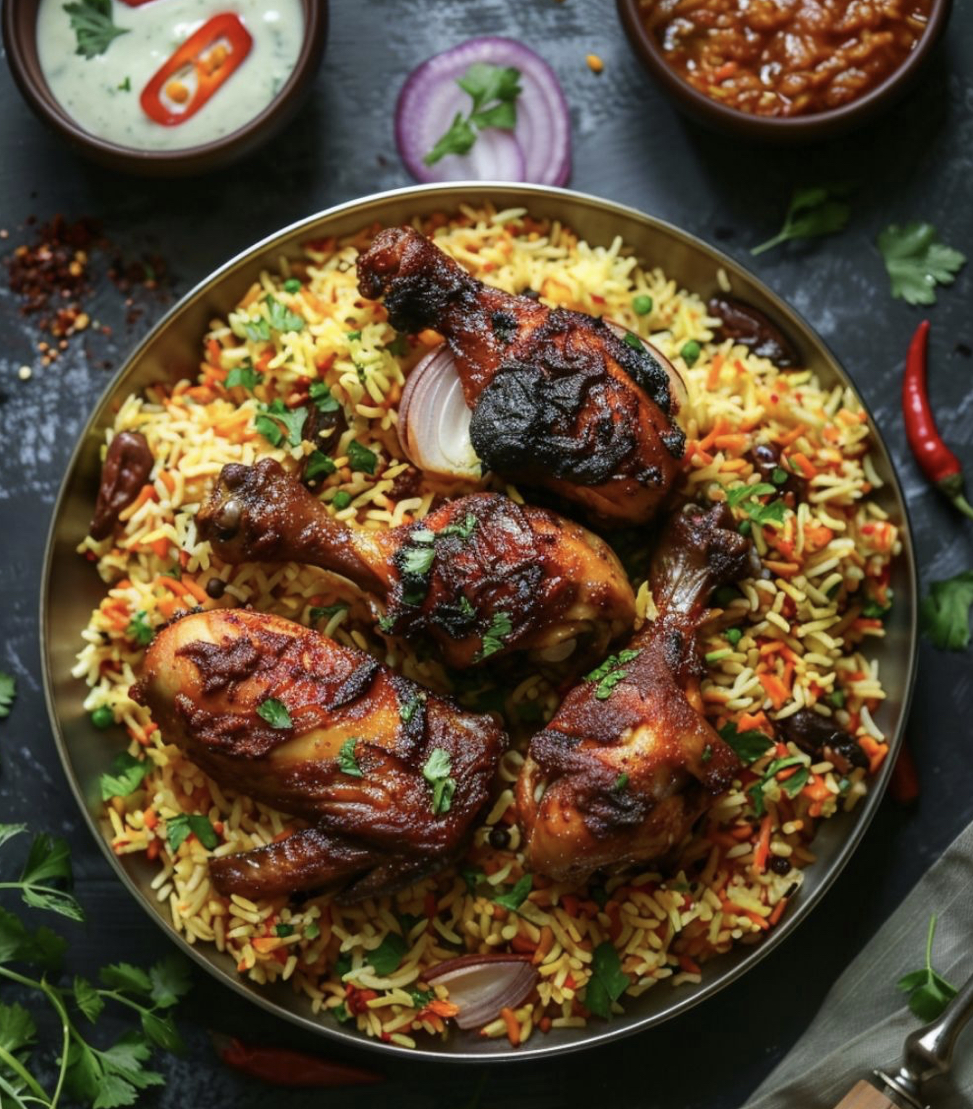 Grilled chicken with basmati rice and vegetables